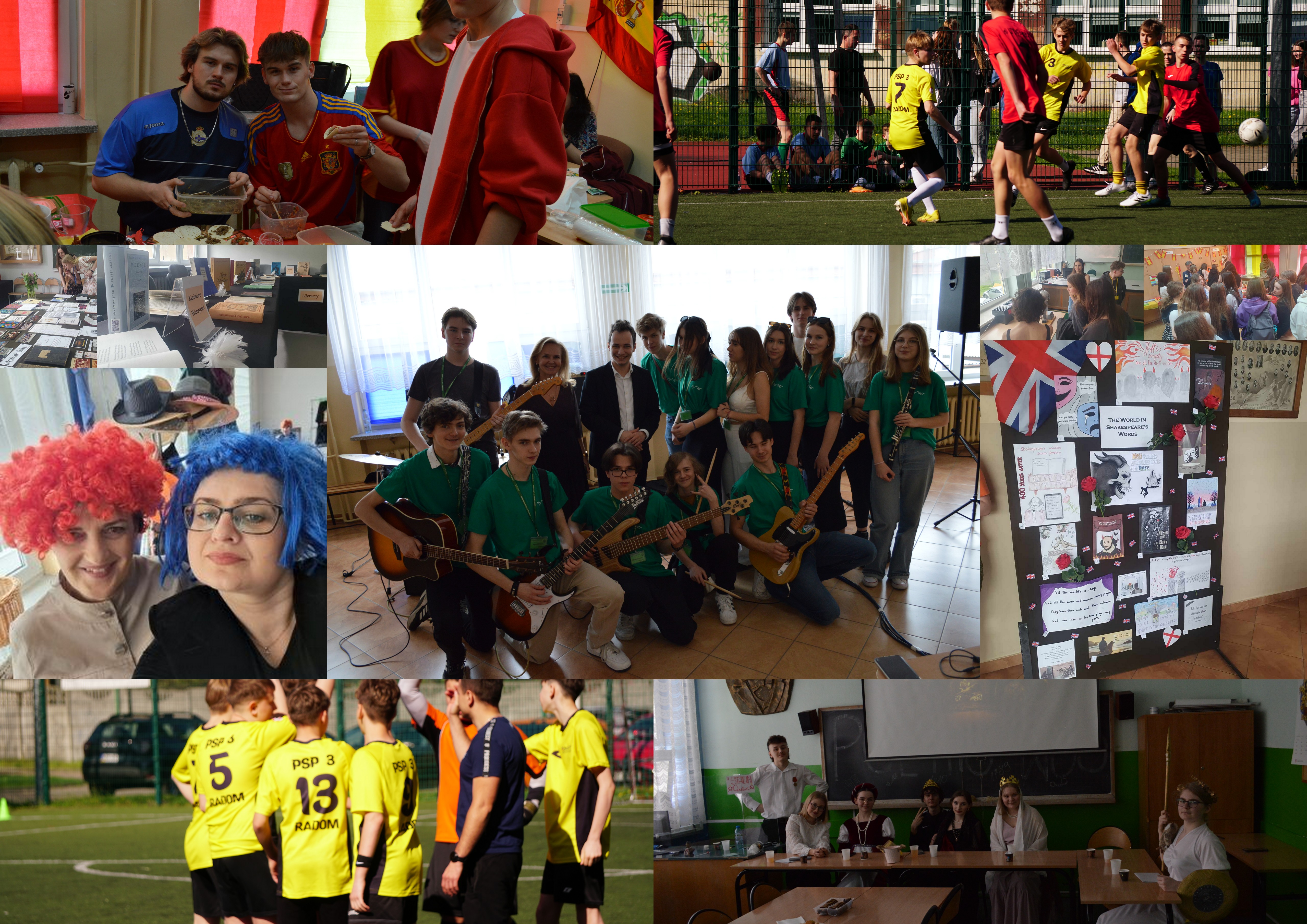 „Angielska kawiarenka” – poczęstunek w stylu angielskim, gry i zabawy językowe, mini koncert, filmy „Porady dla obcokrajowców w PL”, wystawa prac uczniów „Szekspir na plakacie”.