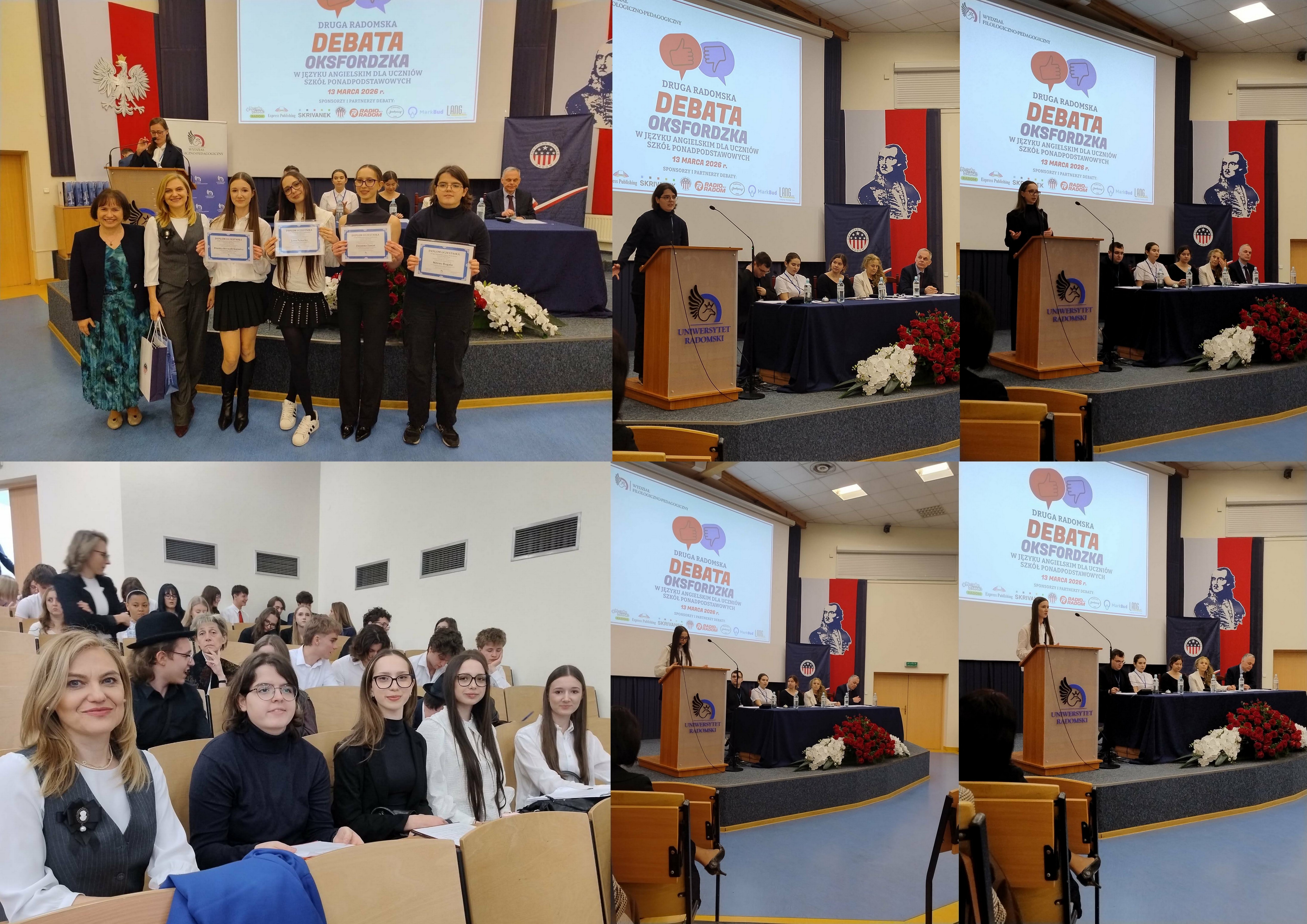 W dniu 13 marca odbyła się Druga Debata Oksfordzka w języku angielskim dla uczniów szkół ponadpodstawowych. Naszą szkołę reprezentowały uczennice z klas 3c i 3e: Milena R., Zuzanna Z., Lena P. oraz Blanka B. Tematem debaty była następująca teza: Social media shapes young peoples career aspirations more strongly than school od family. W drodze losowania okazało się, że dziewczęta będą stroną broniącą tezy. Milena, Zuzia i Lena kolejno, wspaniale zaprezentowały argumenty za , natomiast Blanka perfekcyjnie podsumowała wypowiedzi koleżanek. Dziewczęta miały okazję zaprezentowania się przed większą publicznością, gdyż w debacie brało udział 12 szkół z Radomia i regionu. Uczennice wykazały się nie tylko umiejętnościami językowymi, ale także wspaniale zaprezentowały się przed dużą widownią. Milenę, Zuzię, Lenę i Blankę przygotowała anglistka Justyna Mrozek.